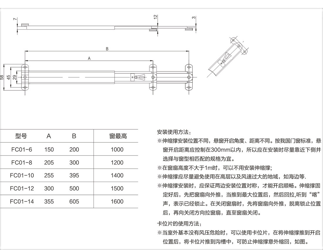 ※符合中国JG/T127-2017 《建筑五金件-滑撑》标准。